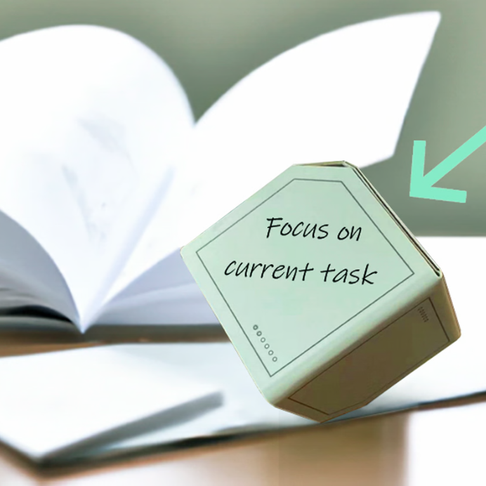 「書き出すタスクは6つのみ」というアイビー・リー・メソッドに基づき、Cubic Plannerは6面体のキュービックデザインになっています。だから、1回に見えるのは1つのタスクのみ。