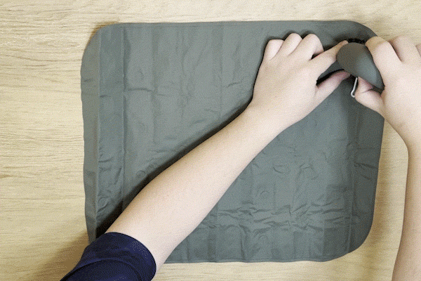 収納ケースはクッションを取り出したら専用ポンプに早変わり!手で軽く押していくだけで簡単に膨らみます。